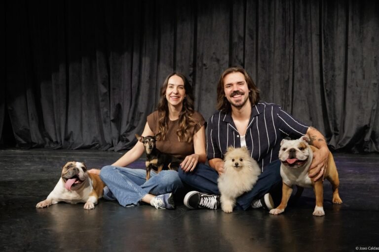 Quatro patas, luzes e aplausos: cães dividem o palco com artistas na peça “Por Toda a Minha Vida”
